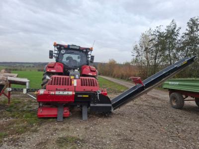 Oehler Sägespaltautomat Maximaler Stammdurchmesser 42cm Spaltkraft 14t 5m Verladeförderband Spaltkreuz 6 und 8fach Mit hydraulischem Zuführtisch Nur mit Schlepper und Bedienperson als Dienstleistung Jonas Schöppler Birkelbach 23 Satteldorf +49 1577 0231266