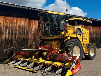 New Holland FX 48 500 PS Motorleistung 800 Reifen auch für Feuchte Flächen optimal 8 Reihen Mais Vorsatz 3 Meter Gras Pick up Schnittlänge von 4-35mm Mais Hektar 130€plus Diesel und MwSt Gras Stunde 120€plus Diesel und MwSt